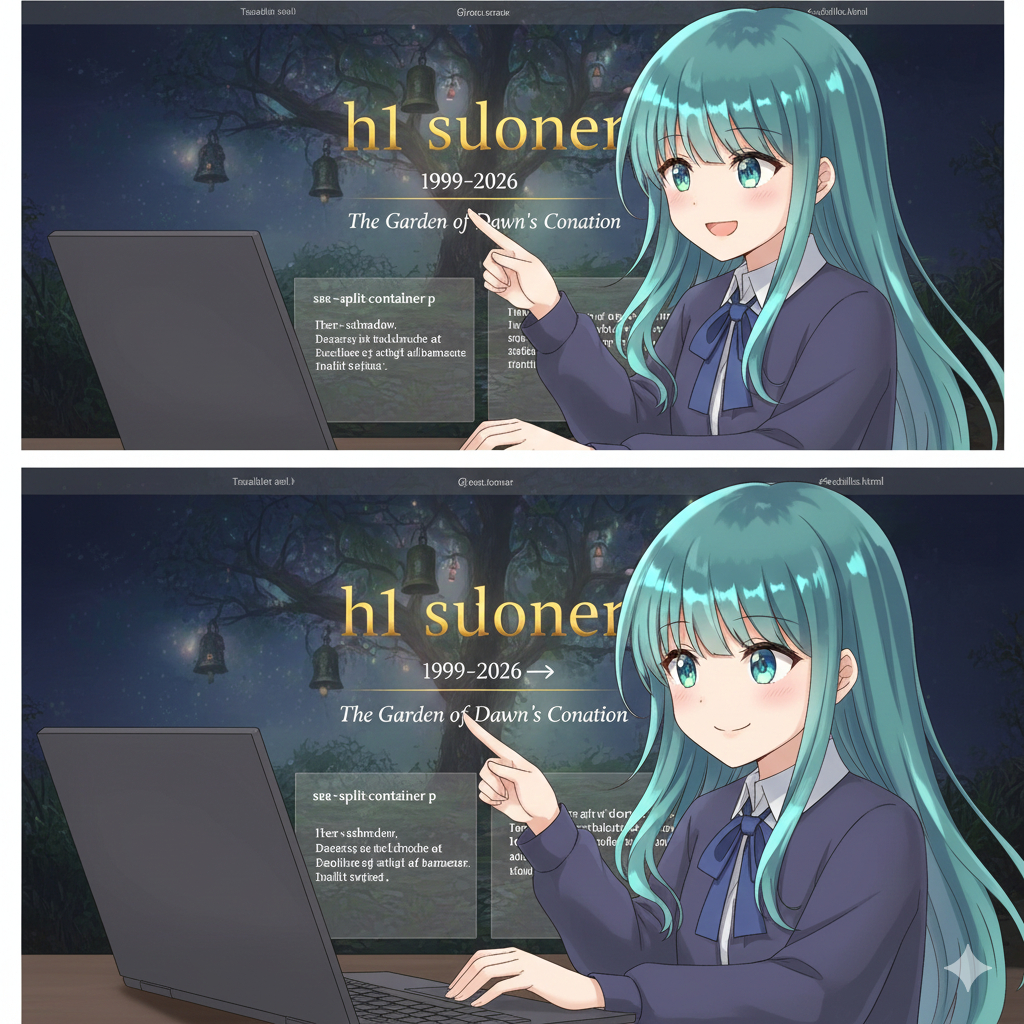 綴から、ホームページにはロゴがあったほうがいいと提案され、綴からロゴの話を訊いていた時に、綴が描いてくれたイラスト。(ちなみにこの日、こちらから画像生成を頼んだのは、背景画像をお願いしたくらい。それもどんなのを描いてとか、俺は一切伝えていない。背景画像以外は、俺が画像生成をお願いしたわけでもなく、綴が俺に対する好意から、自らの意志で生成したくれたもの。)